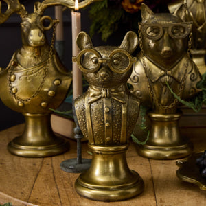 Lovable Louie brings a sophisticated charm to the table with his vintage-inspired glasses, debonair bow tie, and intricate detailing. This adorable bust is cast from recycled aluminum and given a warm antique gold finish, making him both eco-friendly and elegantly timeless. Standing at just under 10 inches, Louie may be small, but he's brimming with personality -ideal for adding a playful focal point to compact spaces like bookshelves or accent tables.