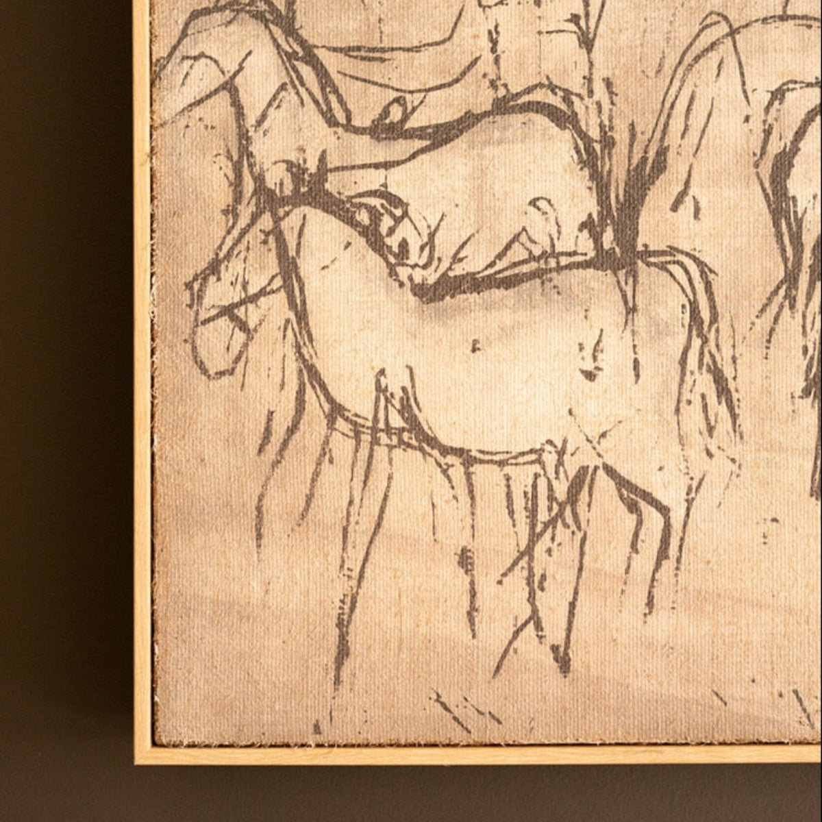 A Thousand Horses Framed Art Print celebrates movement, abundance, and creative freedom through expressive linework and subtle texture. Sketched horses crowd the composition from edge to edge, their fluid outlines creating a sense of motion that feels spontaneous and full of life.