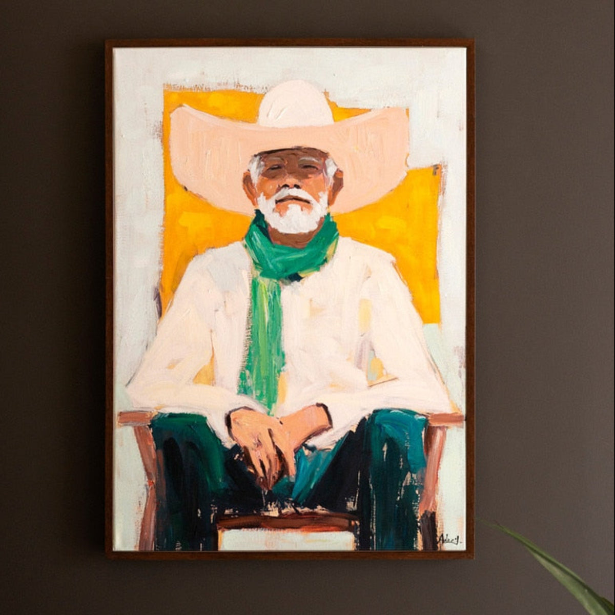 The Between Stories Cowboy Painting reimagines a classic Western figure through a modern, expressive lens. Bold strokes and layered color give the portrait its energy, while the cowboy’s relaxed posture and steady gaze suggest a pause mid-thought, as though he is about to speak or simply content to sit in silence.