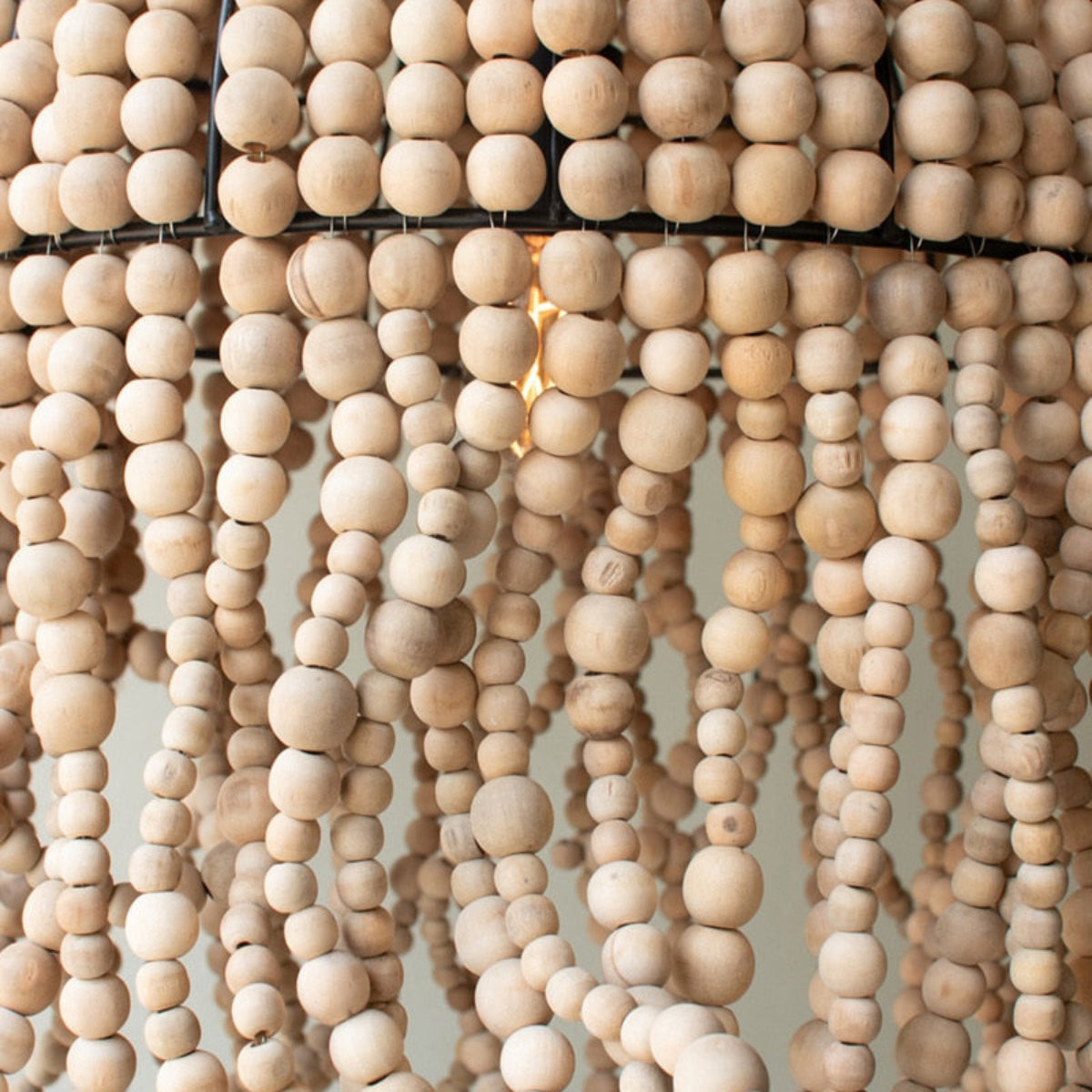 Hand-strung from smooth, unfinished wooden beads, this sculptural pendant lamp is a coastal fantasy come to life. Its dome-like shade and flowing, bead-strand “tentacles” create soft movement and mesmerizing shadows when lit. Measuring 16" in diameter and 38" tall, The Driftwood Jellyfish Pendant works beautifully in relaxed beach homes, bohemian bedrooms, or any nook that could use a whisper of the sea. Try hanging it low over a reading corner or grouping two over a dining table for a statement that feels both organic and artful. Pair with woven textures, natural woods, and linen to complete the ocean-inspired palette.