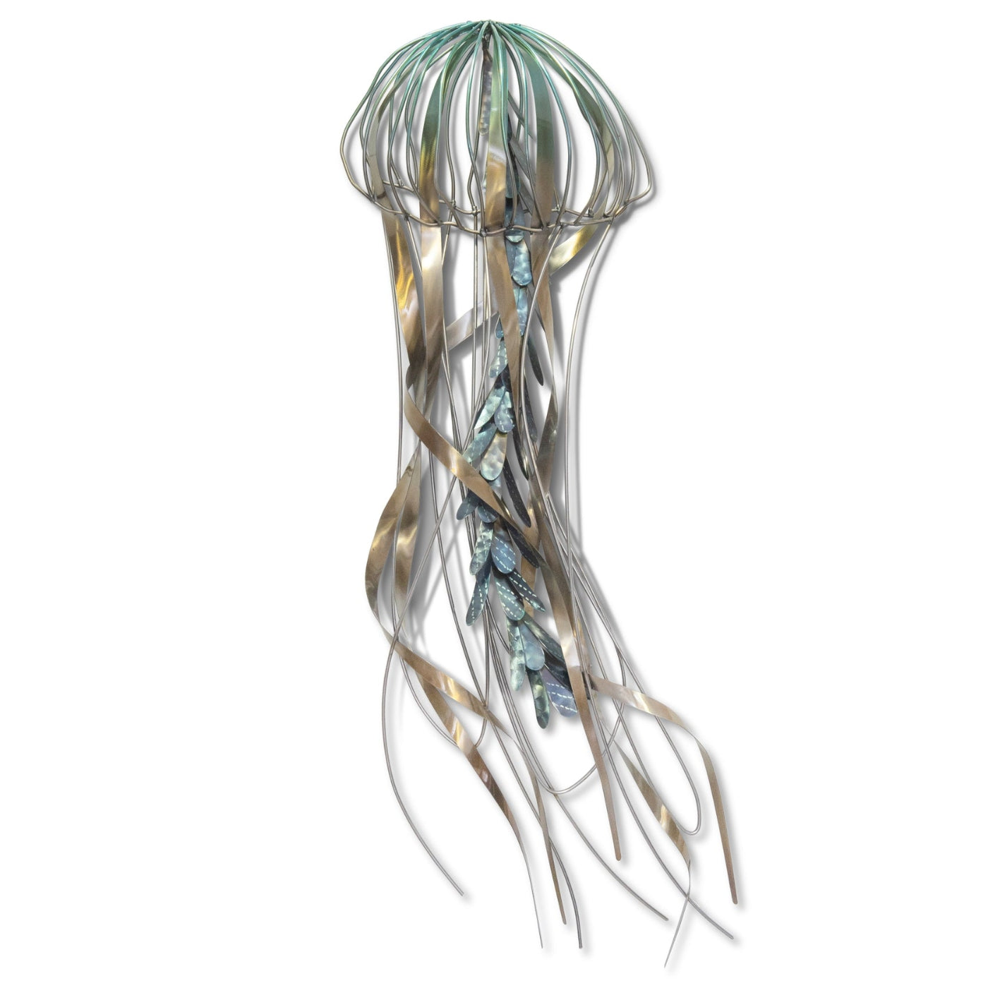Luna Drifter brings the quiet magic of the sea to your space. Hand-shaped from stainless steel ribbons, each curve shimmers with reflected light, creating the illusion of gentle underwater movement. The artist’s use of heat patina adds soft greens and silvers that shift with the light, giving this jellyfish sculpture an ethereal glow.