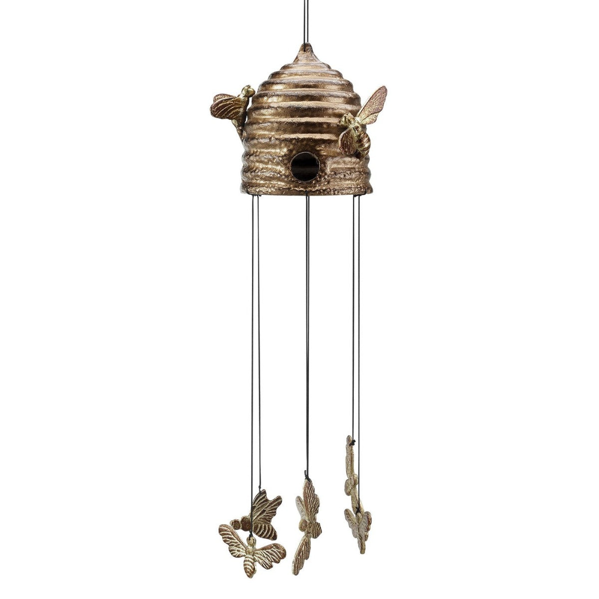 The honeycomb and bee details of this sweet little windchime will cast buzzworthy chimes in your gardens breeze.