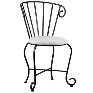 Our wrought iron patio chairs are hand forged with the same tools blacksmiths have used over the centuries a hammer, an anvil and red-hot iron. Each piece is then sandblasted to remove all impurities and ensure superior adhesion and a polyester powder coat is electronically applied and backed in. This multi-step process that adds beauty and provides lasting protection. The round iron side chair is available in your choice of powder coated finishes.