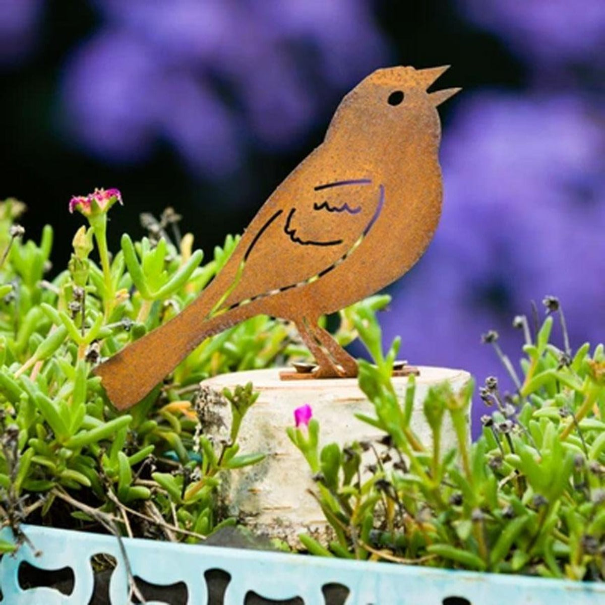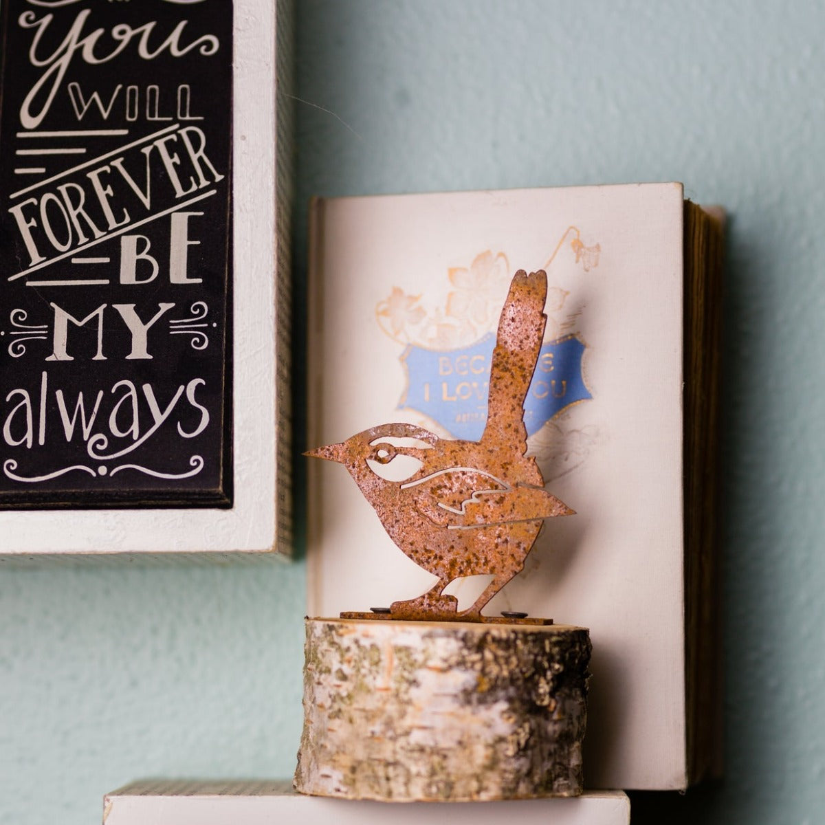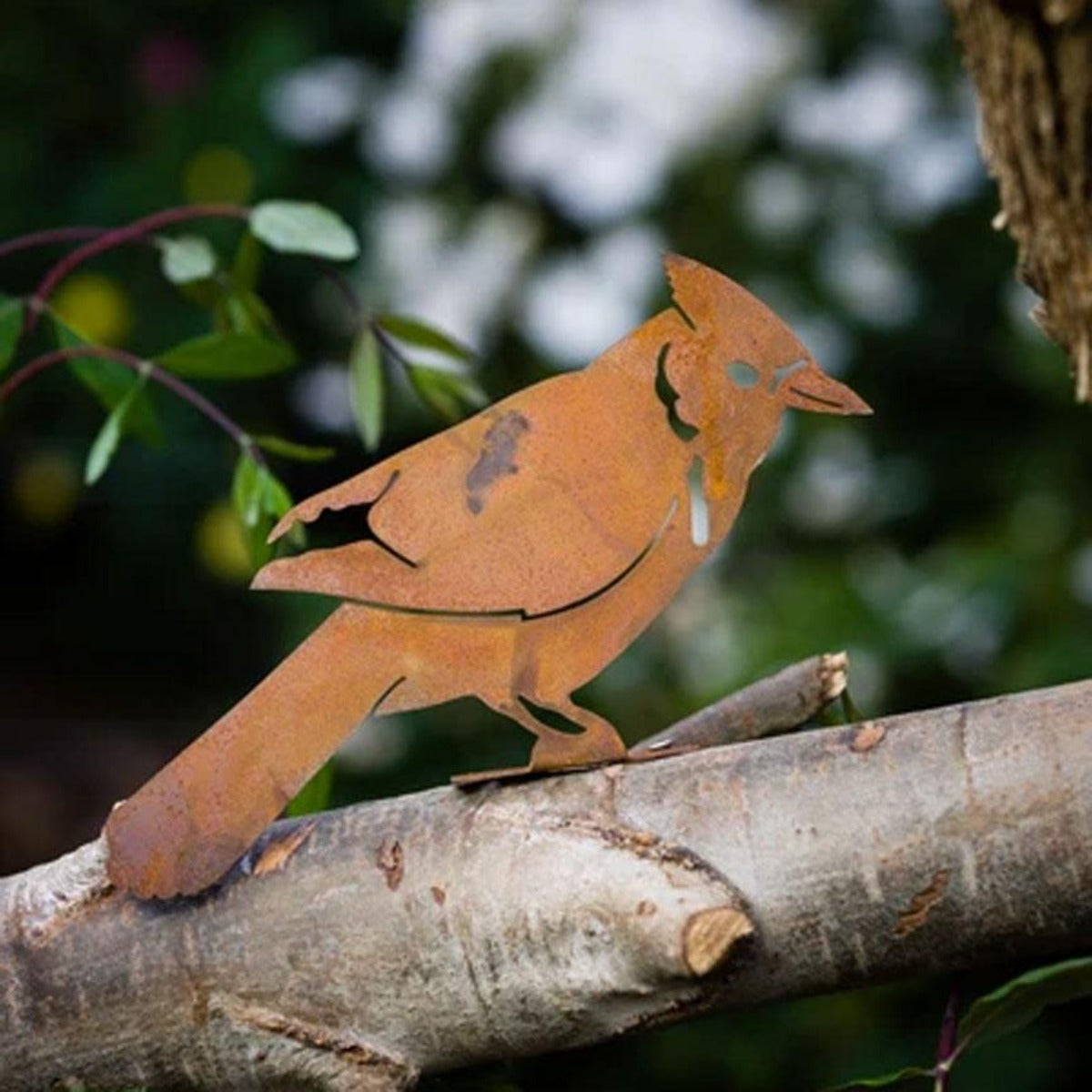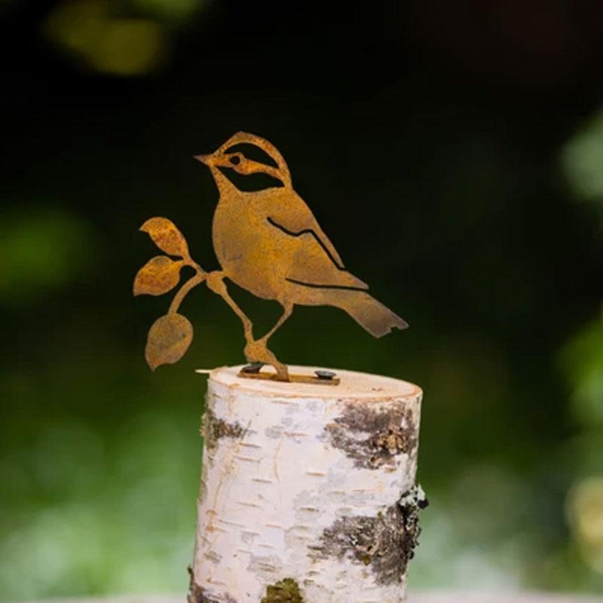 A fabulous selection of the small songbirds and tree climbers normally found in our own backyards and gardens feeders. Ranging in size from three to five inches, each rustic bird is a non aerial one dimensional version of its chirpy, chatty feathered model - without the seed spillage. The nuthatch is so realistic it's even depicted racing down a tree head first!