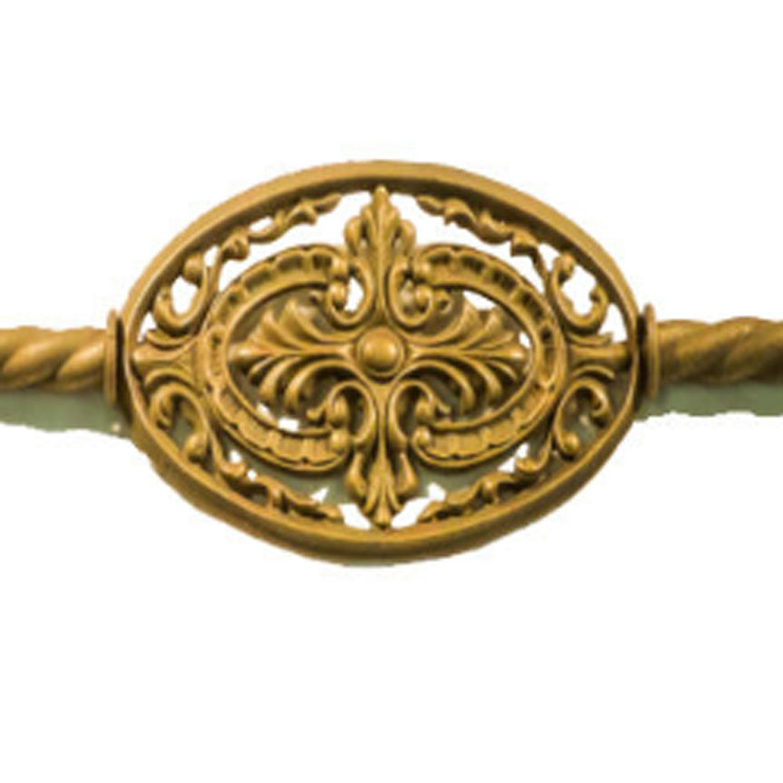 Designed to be mounted at the center of your custom drapery rod, this cast iron accent transforms functional hardware into a focal point worthy of admiration. Whether flanked by Acorn Flair finials (as shown) or paired with other decorative endpieces, the Arabella anchors the rod with architectural beauty.