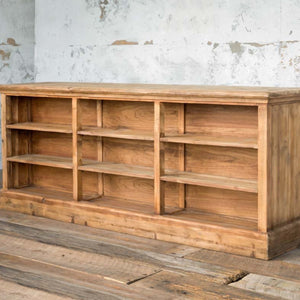 The Pharmacy Counter captures the essence of old-world craftsmanship with its meticulously designed storage and striking presence. Crafted from reclaimed pine and tung wood, its natural finish highlights the unique grain patterns, knots, and imperfections that tell a story of time and tradition. The carefully arranged drawers - ranging from petite compartments to spacious storage - make organization effortless, whether you’re storing linens, office essentials, or treasured keepsakes. Perfect as a statement sideboard, a shop display, or a functional accent in any space, this piece blends history and practicality with undeniable charm.