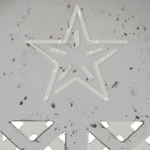 The Rustic Barn Metal Napkin Holder brings a delightful farmhouse touch to your dining space. Crafted from durable metal with a distressed white finish, this napkin holder features barn door lattice cutouts and a classic star design, evoking the charm of a country homestead.