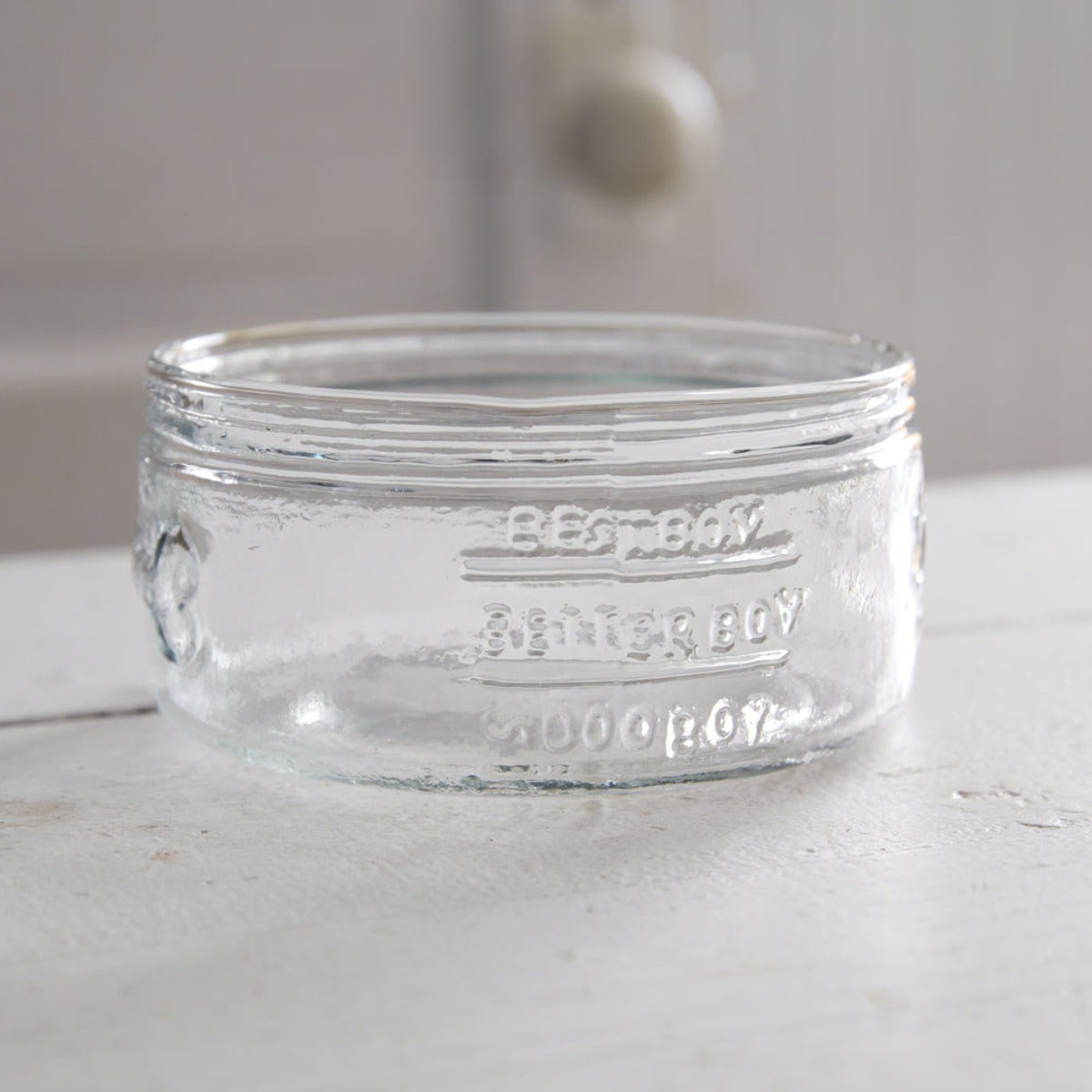 Measuring 5 ½'' in diameter and 2 ¾'' in height, the Bones Mason Jar Dog Bowl is the perfect size to cater to your pet's needs, whether big or small. It's a delightful and functional addition to your farmhouse-inspired home.