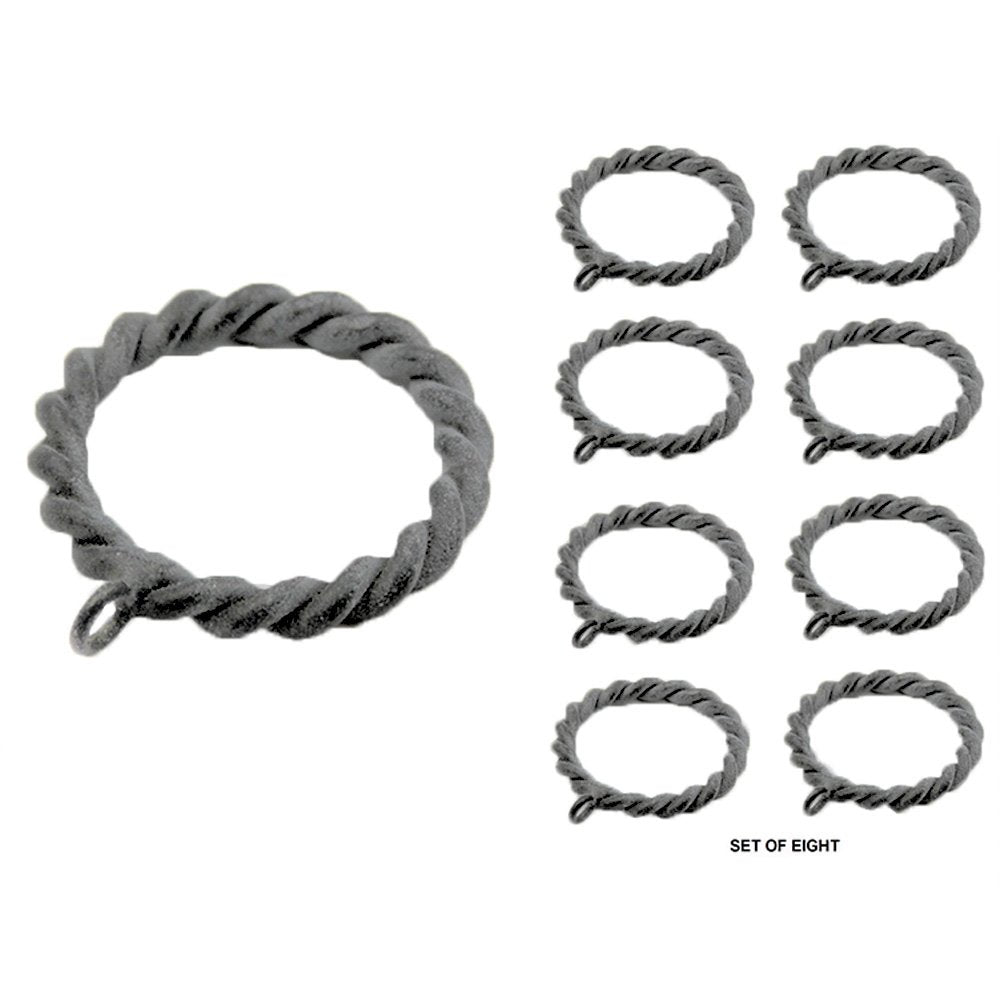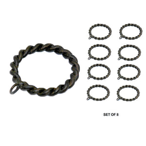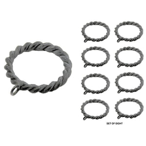 Add some zing to the hanging of your draperies with these two inch in diameter braided rings. Shipped as a set of eight and comes in four finish options, these drapery rings would make a splash holding a shower curtain as well! Indoor or outdoor use.