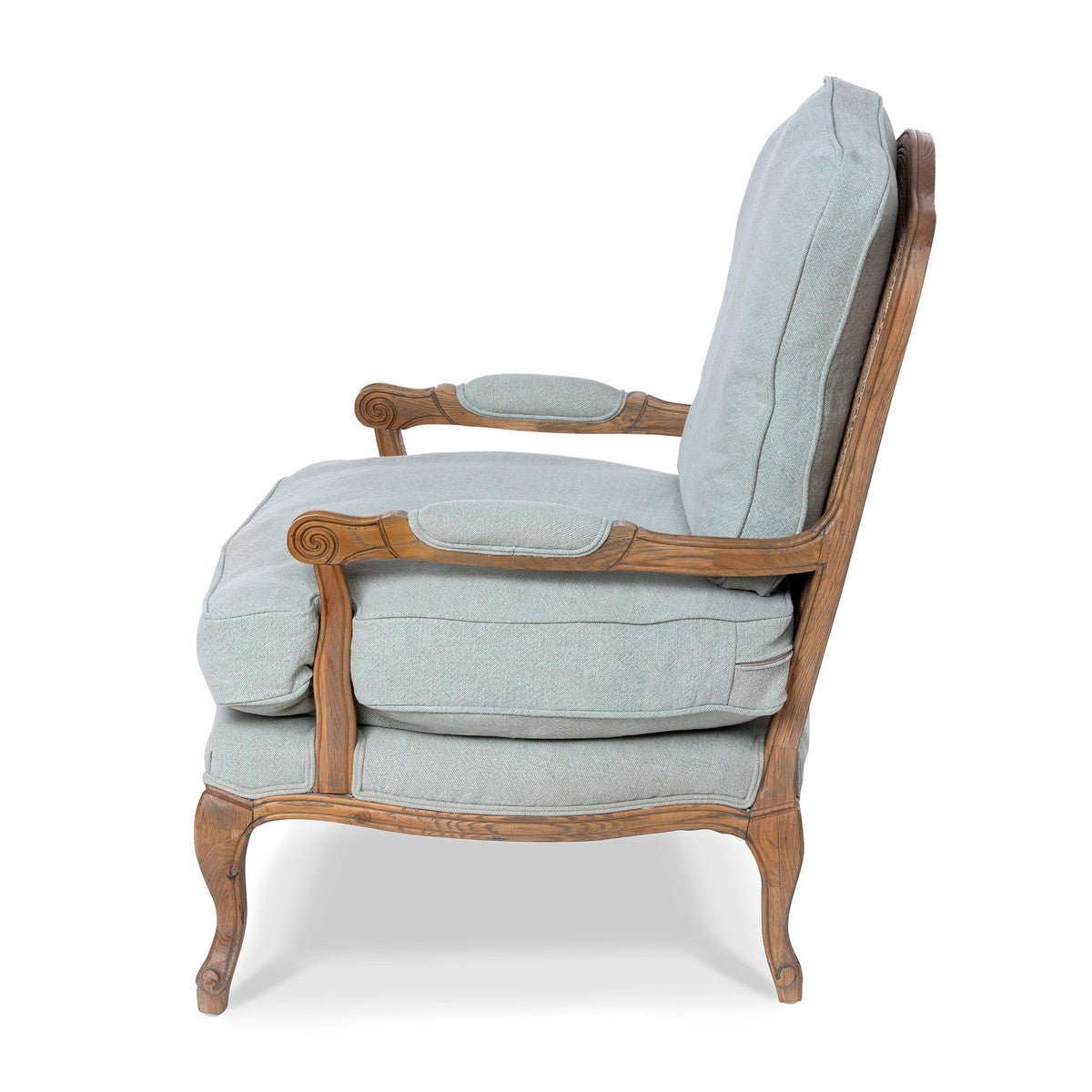 Who says you have to sacrifice comfort for style? Our Camille Upholstered Arm Chair in a stunning seafoam green linen proves that you can have both. Featuring an oak frame in a Louis XV silhouette, this chair is as beautiful as it is comfortable. The plush, removable cushions make maintenance a breeze, making it ideal for high-use areas of your home. With this chair, you'll never have to choose between style and comfort again. Add a touch of elegance and comfort to your home with the Camille Upholstered Arm Chair today!