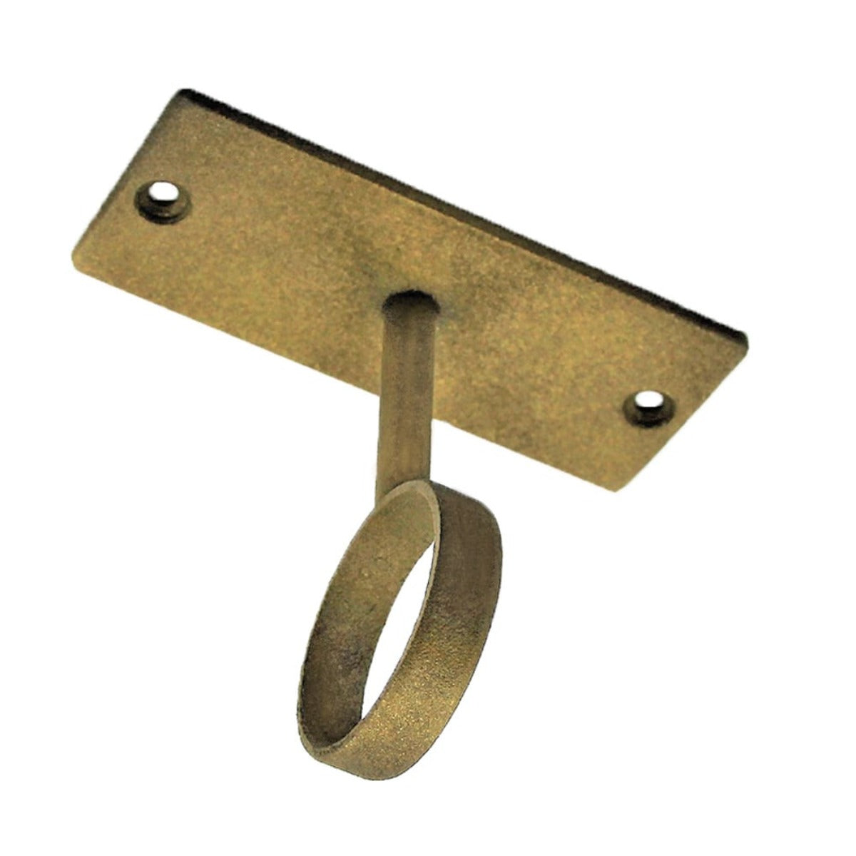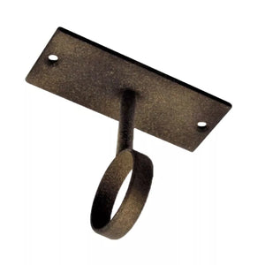 Format a fashionable way with drapery by employing a pair of these ceiling ring brackets available in four photo-ready finishes. Powder coated metal. Indoor or outdoor use.