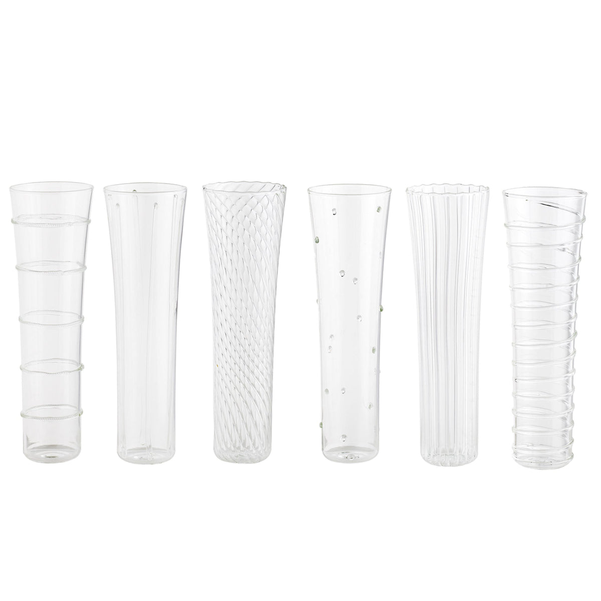 The Celebration Champagne Flutes transform any occasion into a celebration. Beginning as crystal-clear glass tubes, each flute is shaped over an open flame, with intricate textural details applied by hand. The result? A stunning set of six uniquely designed glasses, ensuring every guest has a one-of-a-kind experience.