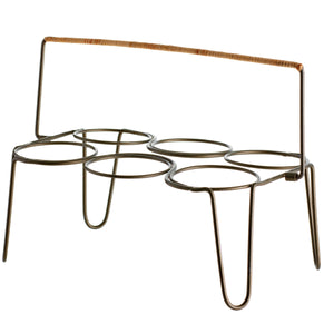 Effortlessly transport your favorite drinkware with the Celebration Drink Caddy, a stylish and functional wire tote inspired by traditional Indian tea glass carriers. Featuring a rattan-wrapped handle for a comfortable grip, this caddy is perfect for outdoor gatherings, picnics, and entertaining. Holds up to six glasses (glassware not included).