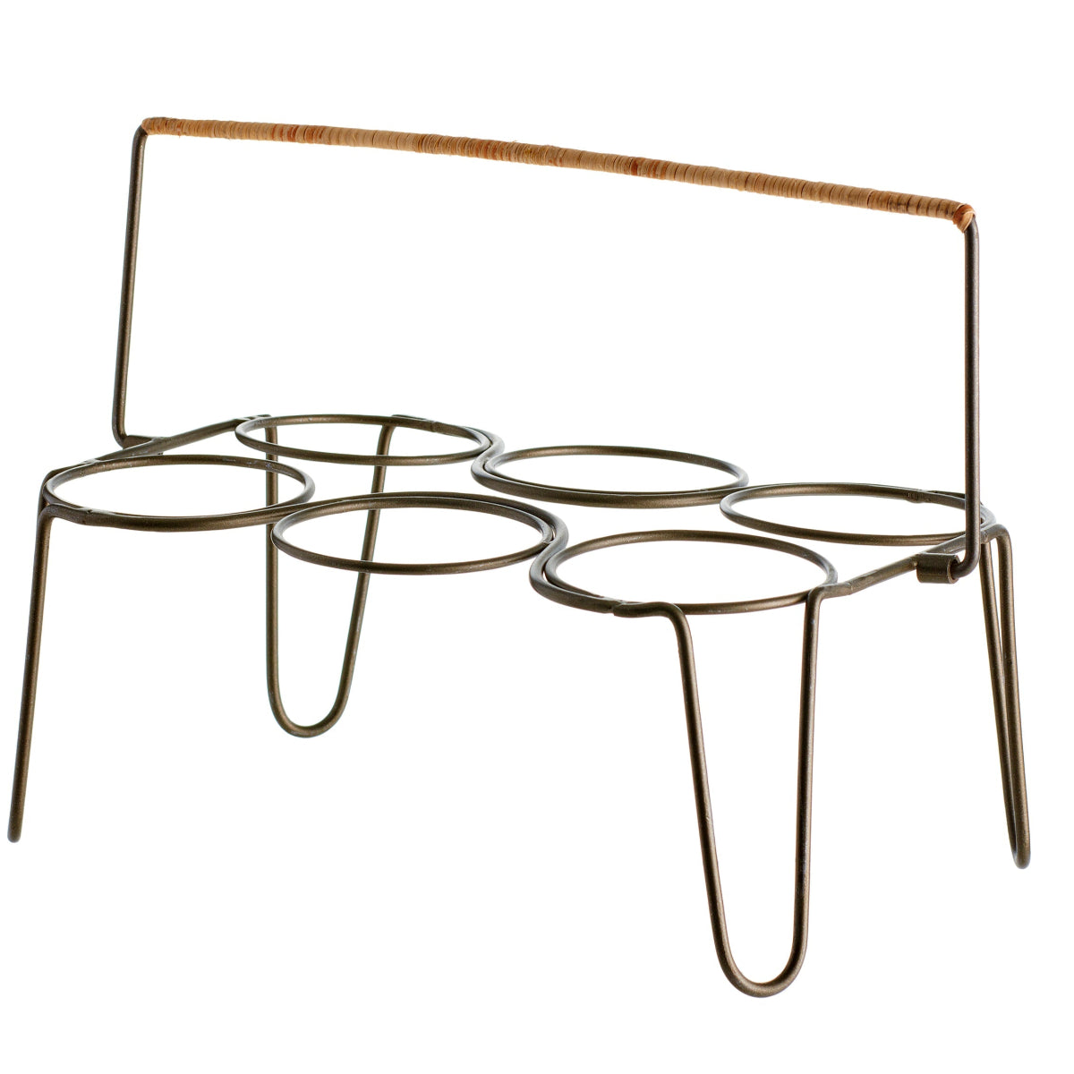 The sturdy metal frame provides stability, while the rattan-wrapped handle adds a touch of rustic elegance and ensures a comfortable grip. Whether you're serving cocktails on the patio, bringing drinks to a picnic, or displaying glassware at your dining table, this caddy makes every occasion more convenient and stylish.
