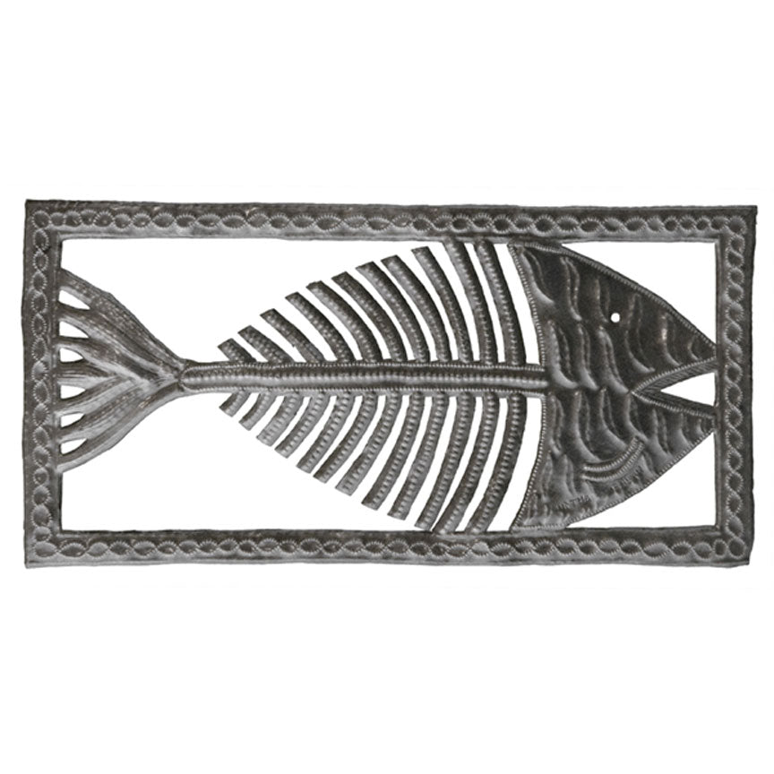 There’s a story in the Tide’s Echo Bone Fish - one that feels equal parts playful and profound. Crafted by artisans from recycled steel oil drums, its skeletal silhouette recalls treasures found along the shoreline, where the sea leaves behind only what endures. Each ridge, fin, and textured line is hand-tooled, turning a humble fishbone into a striking piece of art. Measuring 20 inches wide by 10 inches high, it anchors a wall with graphic simplicity yet carries the soul of coastal life. Indoors, it lends a cheeky nod to kitchens, dining rooms, or gallery walls. Outdoors, it gleams in sunlight, evolving gracefully into a soft patina or kept luminous with a clear varnish. Like a tide-worn relic, it captures the poetry of what remains.