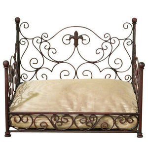 Perfect for your cat or small dog, our antique gold finished pet day bed features scrolling iron designs alongside fleur de lis icons for a truly stylish appearance. Pair with the matching pet feeder for the complete look.