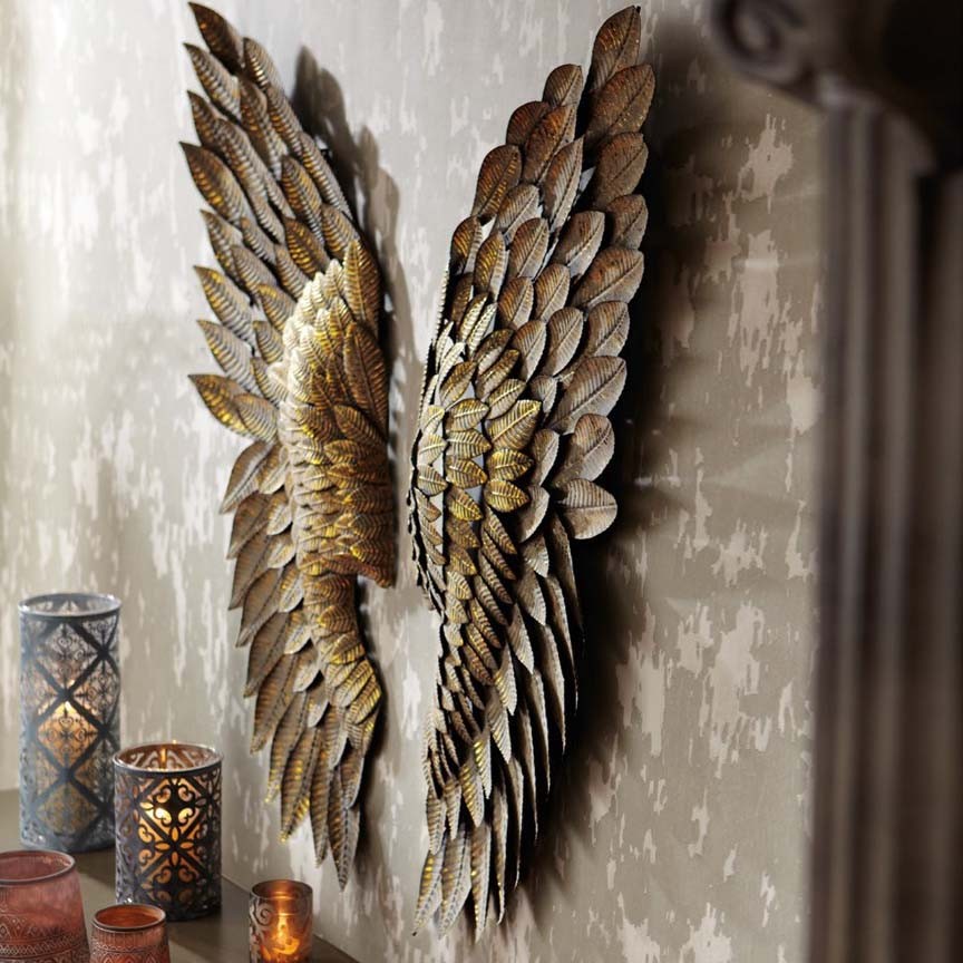 Impart a bit of grace and serenity to a room in your home or give the wings to someone who might need a dose of care and guidance. They come as a pair. Also available in a whitewash gold finish.