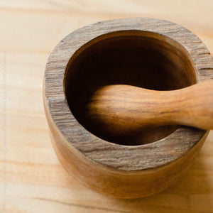 The Harmony Mortar & Pestle is more than just a kitchen tool; it's a piece of reclaimed art. Each set is handcrafted by artisans from central Java who transform gnarly teak roots into functional masterpieces. The rich, natural wood grain and unique shape make every piece one-of-a-kind. Ideal for grinding spices and herbs to release their full flavor, this set is a must-have for any cooking enthusiast. Beyond its functionality, the Harmony Mortar & Pestle serves as a beautiful, eco-friendly addition to your kitchen decor, embodying the sustainable spirit of reclaimed materials.