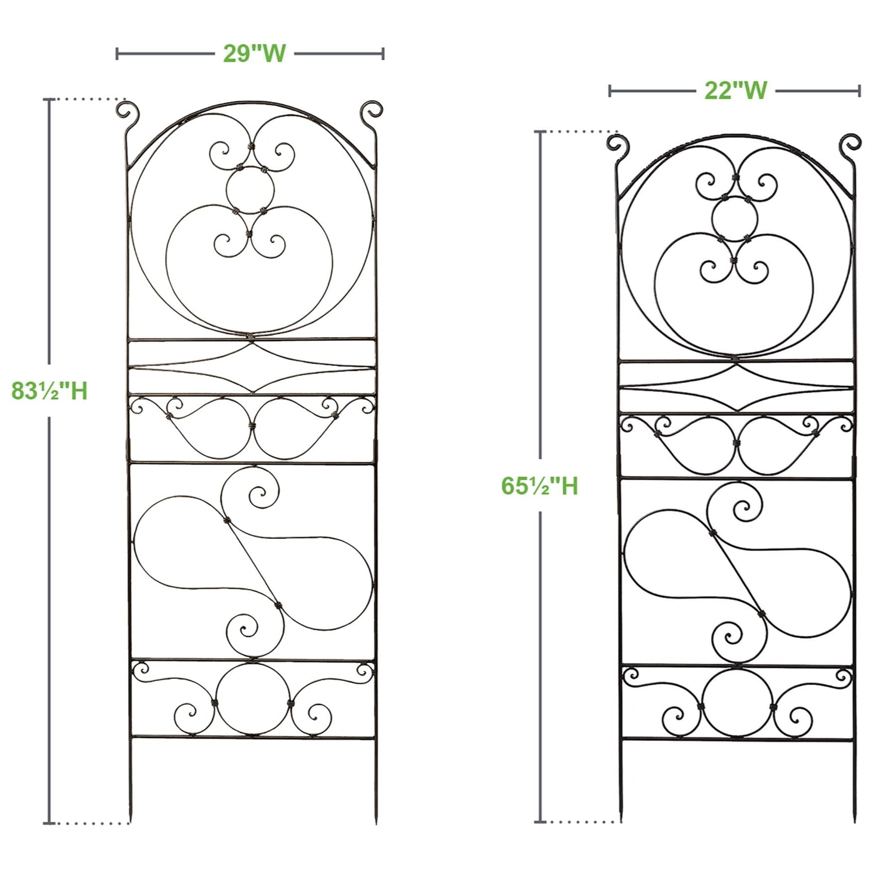 With its timeless silhouette and intricate detailing, the Italia Garden Trellis transforms any garden into a picturesque retreat. Crafted from durable wrought iron and finished in a rich Roman Bronze Powdercoat, this trellis provides sturdy support for your favorite climbing plants, creating a natural, ever-changing work of art. Available in two sizes to suit your space, it serves as a striking standalone accent or a harmonious complement to the matching Italia Arbor and bench. Whether tucked into a garden path or framing an entryway, this trellis invites beauty to climb and flourish.