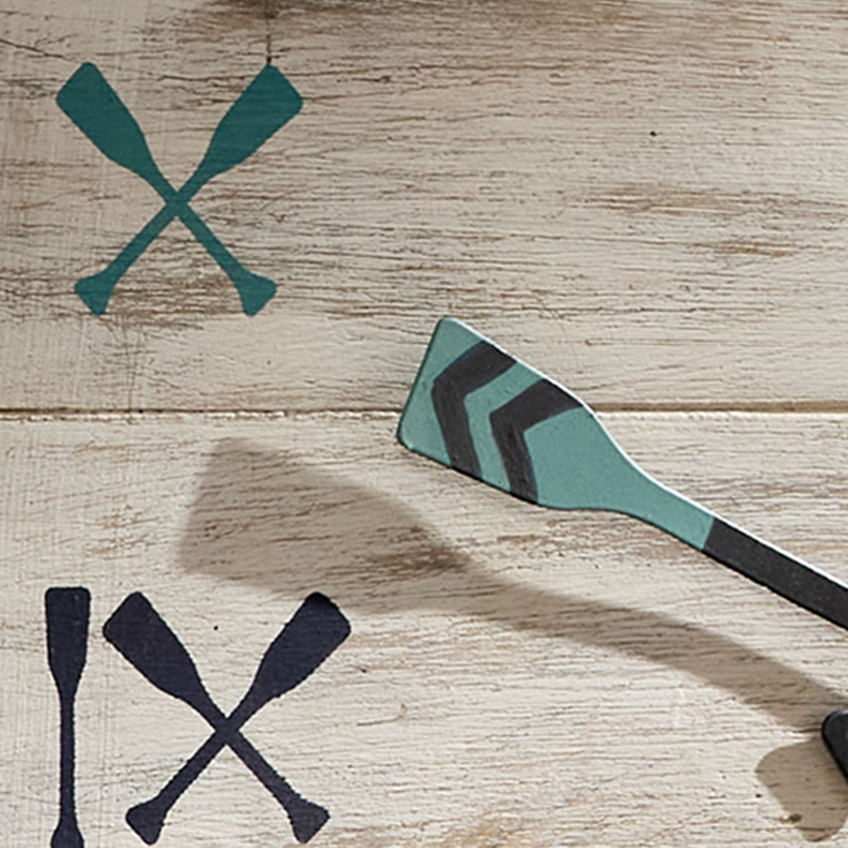 Let time go paddling with this charming lake house wall clock! Made of a white-wash square wooden frame, the unique numerals and dial resembling oars - this clock is the perfect way to bring a touch of the paddle game to any space. So set your own pace, float away with this funky wall clock!