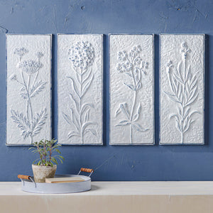 Don't possess a green thumb? "Plant" these pretty blue flowers on your wall! Four distinct floral forms that require no dead-heading, watering or fertilizing. Group together or allow several spaces to bloom.