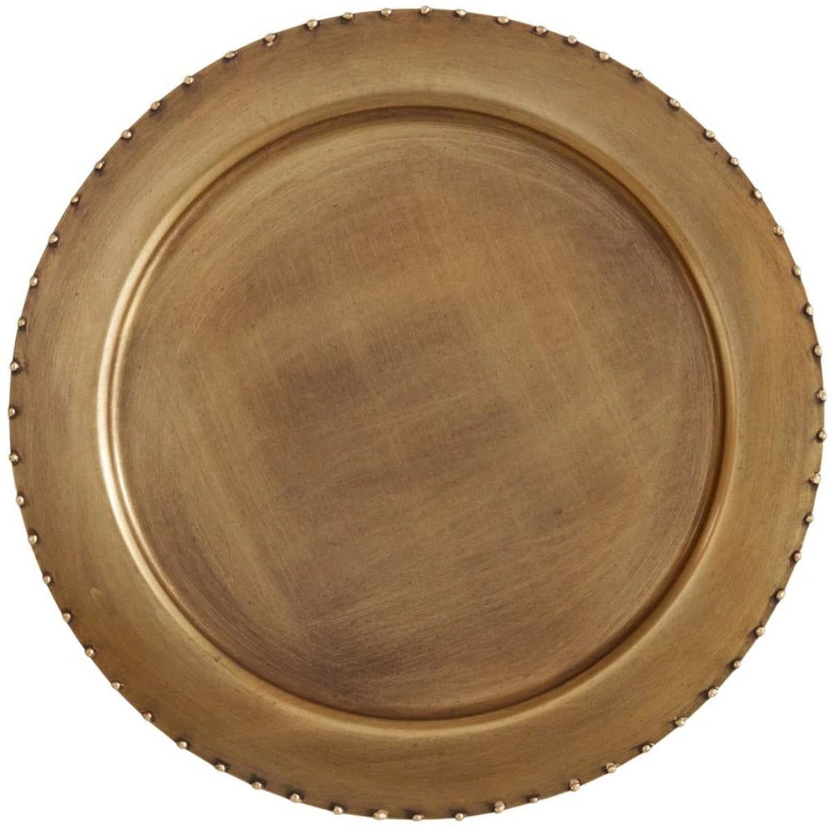 Enrich the character of your table with the Mission Style Charger. The stylized rivets around the edge amplifies their simple form. A nice gift for a new couple or a housewarming.