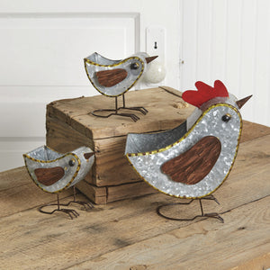 Picture this: a proud mother hen accompanied by her two adorable chicks, all open on the backside and ready to cradle your favorite plants. It's like having a mini farm right in your living room! The galvanized finish adds a touch of vintage country appeal, making them the perfect addition for a rustic look that's as cozy as it is charming.