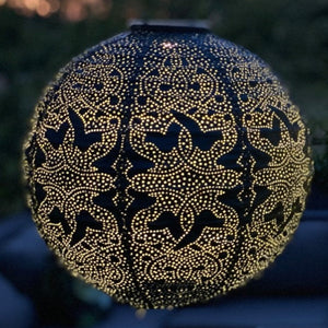 Our petrol blue globe lantern features a hand-punched, Marrakesh pattern made of durable, weather-resistant Tyvek material that is sure to add year-round flair to your outdoor space.