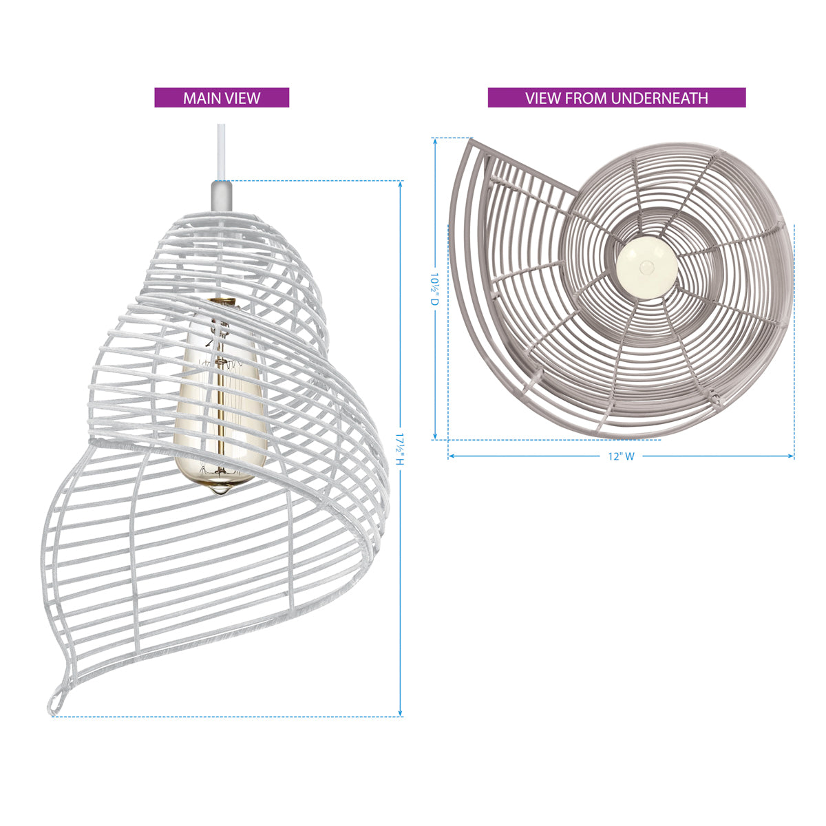 With its fluid, sculptural form and airy metal construction, this pendant light embodies a perfect blend of coastal elegance and modern artistry. The spiral silhouette, reminiscent of a delicate seashell, creates a dynamic focal point while allowing warm light to filter through its open framework. Its crisp white finish enhances breezy, ocean-inspired interiors, yet its contemporary design makes it equally at home in modern and eclectic spaces. Ideal for dining areas, entryways, or even a serene bedroom retreat, this pendant brings a sense of movement and sophistication to any setting.