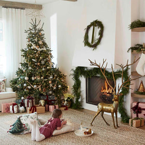 Unveil the grandeur of the season with our stunning 43" x 22.25" x 56.25" stag statue, lovingly coated in an antique-gold finish. It's not just decor; it's an embodiment of timeless grace. Elevate your surroundings and make a statement that transcends from everyday to the holidays, lasting long into the future.