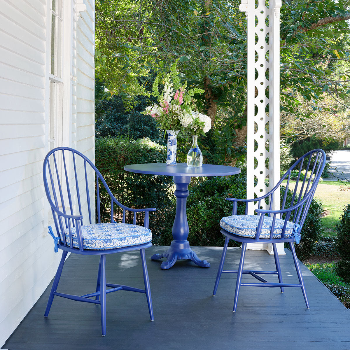 Could they look more like your grandmother's dining room chairs? High old style in fearless aluminum for outdoor use and may be rendered in one of twenty-two finishes. Order a cushion for the current grandma.